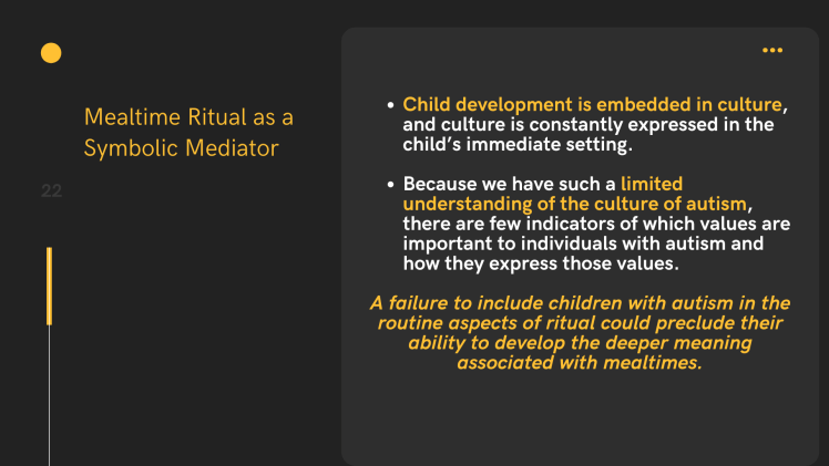Curtiss, S. L. (2018). Integrating family ritual and sociocultural theories as a framework for understanding mealtimes of families with children on the autism spectrum. Journal of Family Theory & Review, 10(4), 749-764. https://doi.org/10.1111/jftr.12298