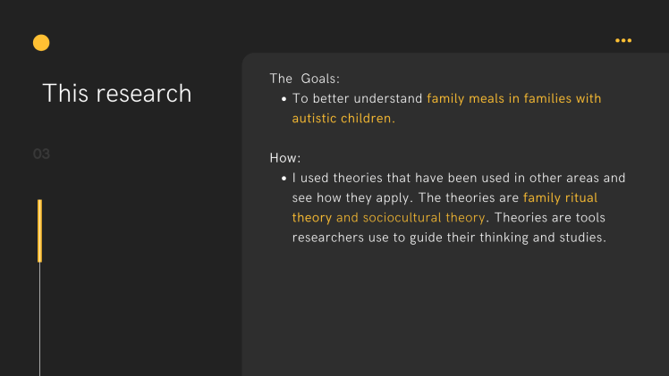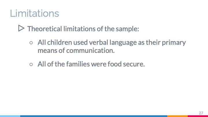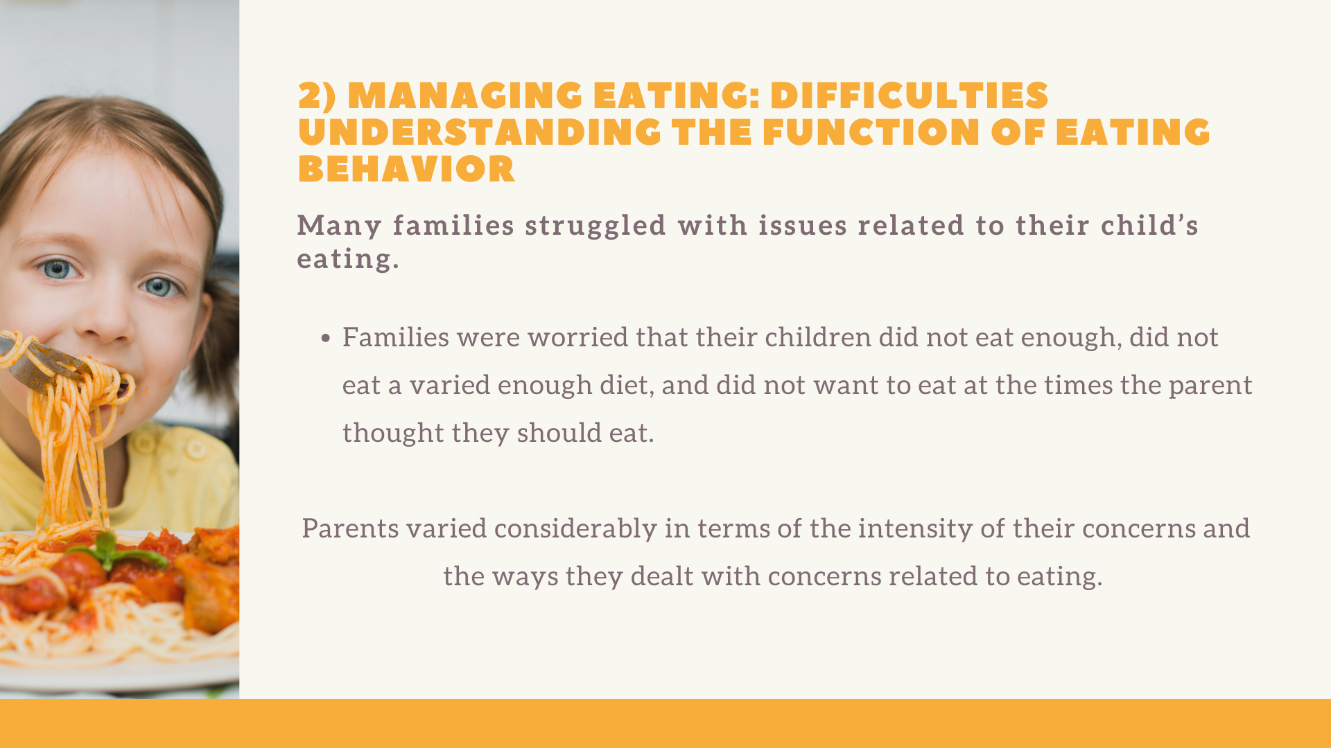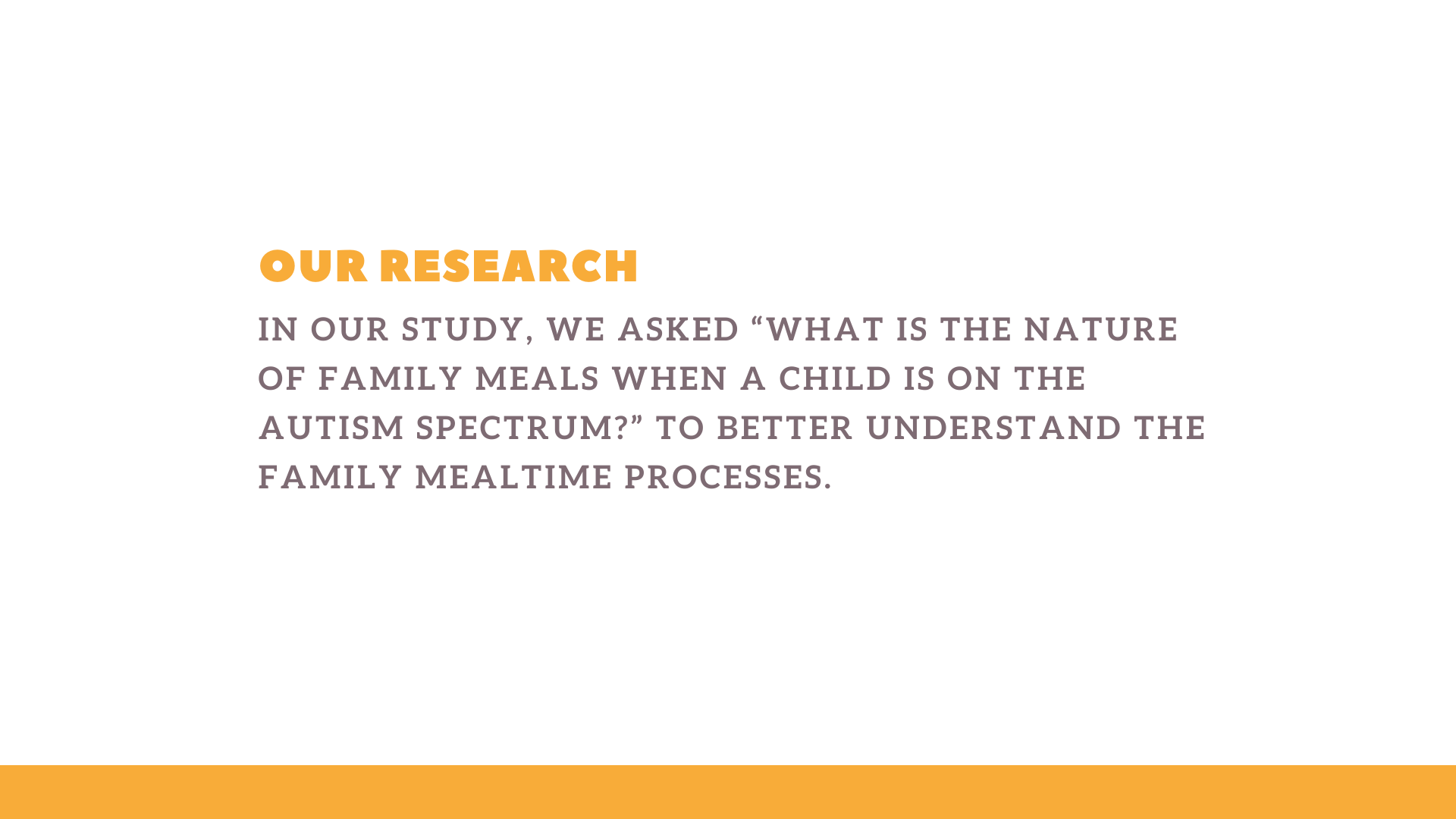 Curtiss, S.L. & Ebata, A.T. (2019). The nature of family meals: A new vision of families of children with autism. Journal of Autism and Developmental Disorders, 49(2), 441-452. https://doi.org/10.1007/s10803-018-3720-9