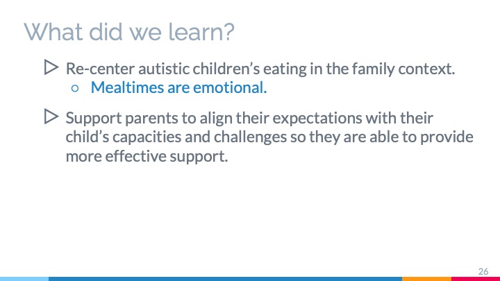 Curtiss, S.L. & Ebata, A. (2021). A dialectic of control and acceptance: Mealtimes with children on the autism spectrum. Appetite, Online first. https://doi.org/10.1016/j.appet.2021.105327